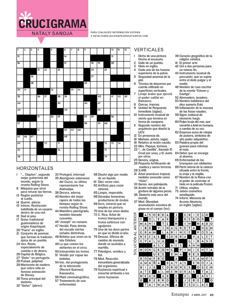 De la mejilla crucigrama. Mancha en la mejilla - Solución Crucigramas 911 Mancha en la mejilla. Crucigramas 911 15 November 2021 EL PAÍS. Aquí puedes encontrar con facilidad la respuesta correcta a través de la pista Mancha en la mejilla. Mucha gente habla de los crucigramas. De lo geniales que son para evitar enfermedades y mejorar la memoria. Cuando resuelves un crucigrama, aumentas tu conocimiento general; no ... Crucigrama 001: Aprenda Mas Sobre La Vida De Jesús ... Crucigrama 001: Aprenda Mas Sobre La Vida De Jesús - Alumno. APRENDA MAS SOBRE LA VIDA DE JESÚS ING. EDGAR CRUZ - 1 2 3. HORIZONTAL 1. Nombre del Apostol que escribio el libro de Apocalipsis. 4. Edad de Jesús cuando principia su Ministerio. 5. Angel que se le aparecio a Maria. Anat., de la mejilla - Pistas y soluciones de crucigramas ... Anat., de la mejilla. En esta ocasión, tenemos la pista para crucigrama: Anat., de la mejilla.Encontremos posibles respuestas a esta pista. Usando toda la información recolectada, resolveremos la definición del crucigrama "Anat., de la mejilla" y obtendremos la respuesta correcta. De la mejilla - Pistas y soluciones de crucigramas - ZeWord De la mejilla. En esta ocasión, tenemos la pista para crucigrama: De la mejilla. Encontremos posibles respuestas a esta pista. Usando toda la información recolectada, resolveremos la definición del crucigrama "De la mejilla" y obtendremos la respuesta correcta. Tenemos 1 posible solución para esta pista en nuestra base de datos.