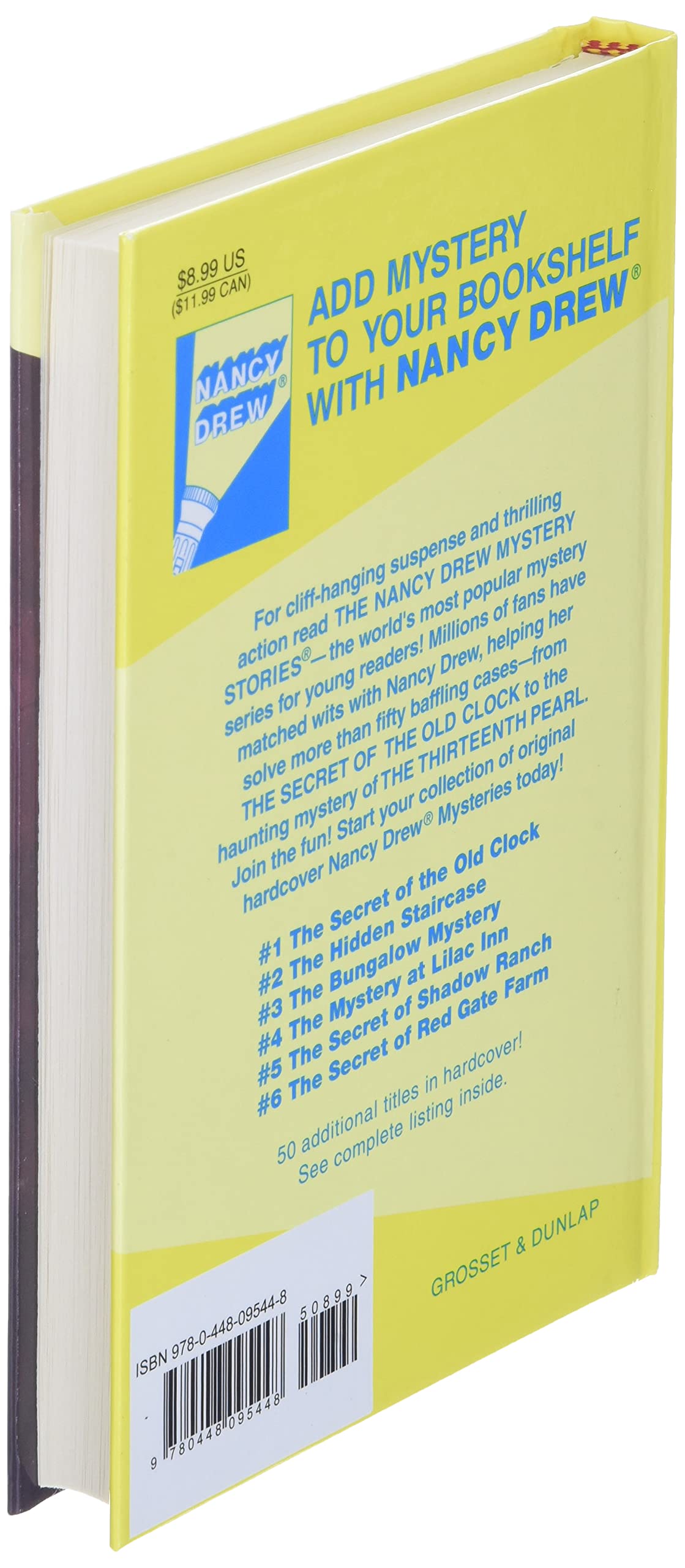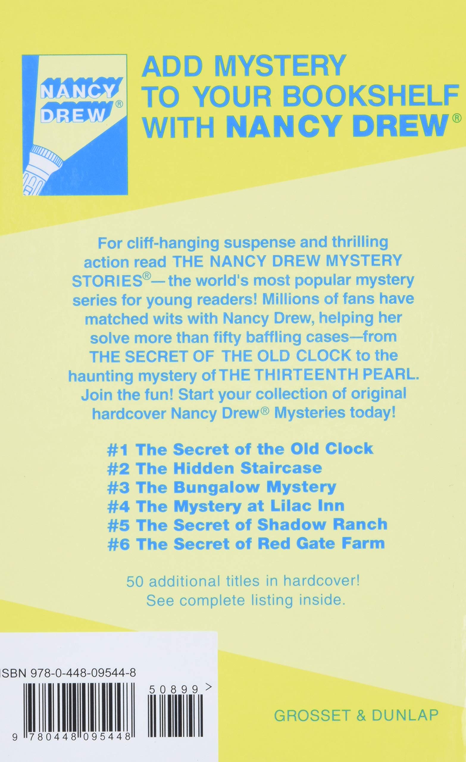 Nancy Drew Complete Series Set, Books 1-64 Hardcover Nancy Drew has been solving mysteries, and delighting fans, for over 75 years. Now, for the first time, you can purchase all sixty-four classic Nancy Drew titles in one complete set! ... #44: The Clue in the Crossword Cipher #45: The Spider Sapphire Mystery #46: The Invisible Intruder #47: The Mysterious Mannequin #48: The Crooked Banister #49 ...