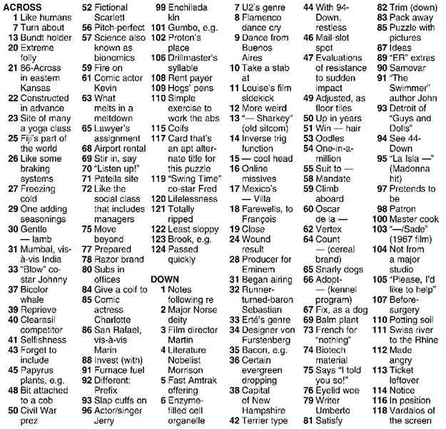 44 writer umberto crossword